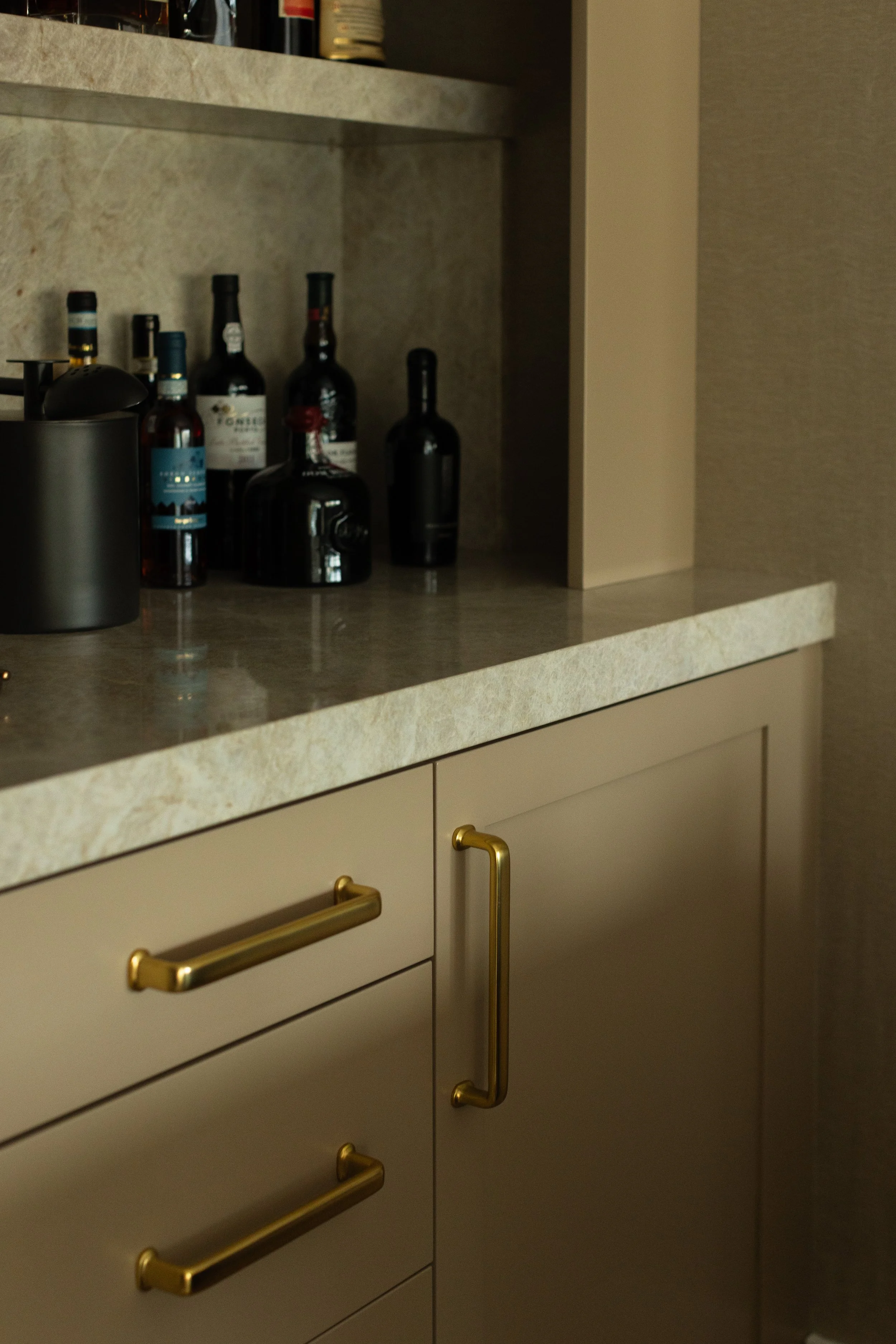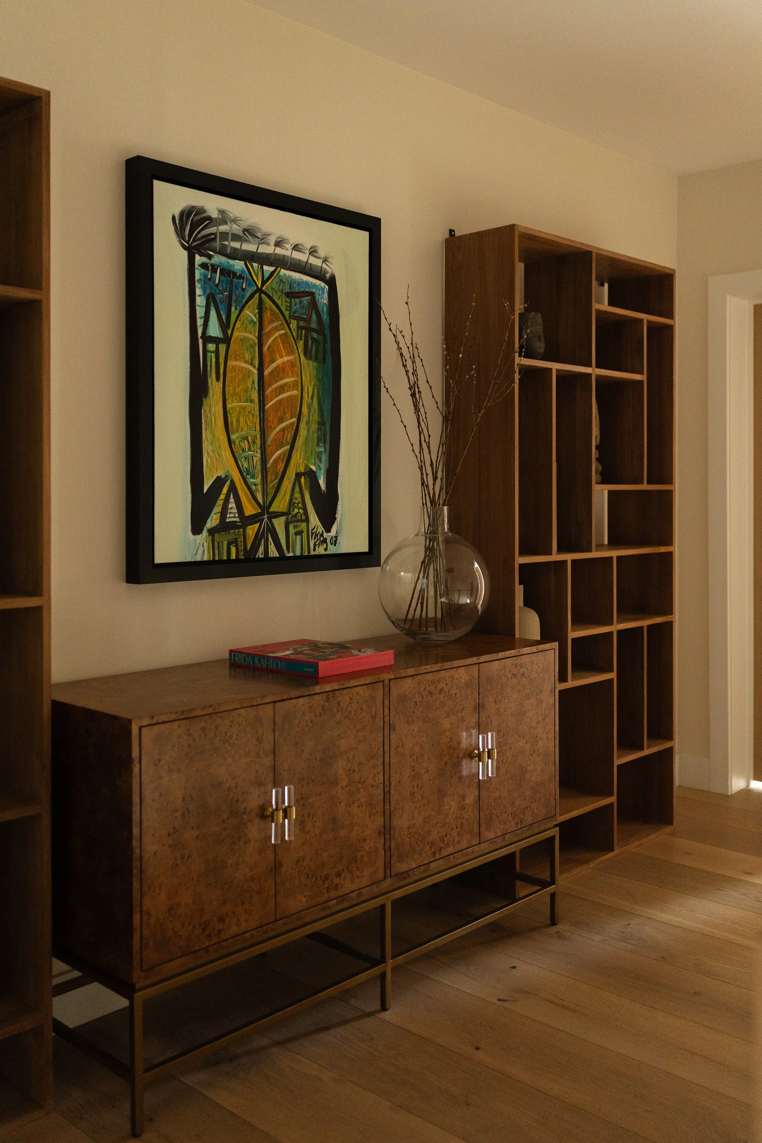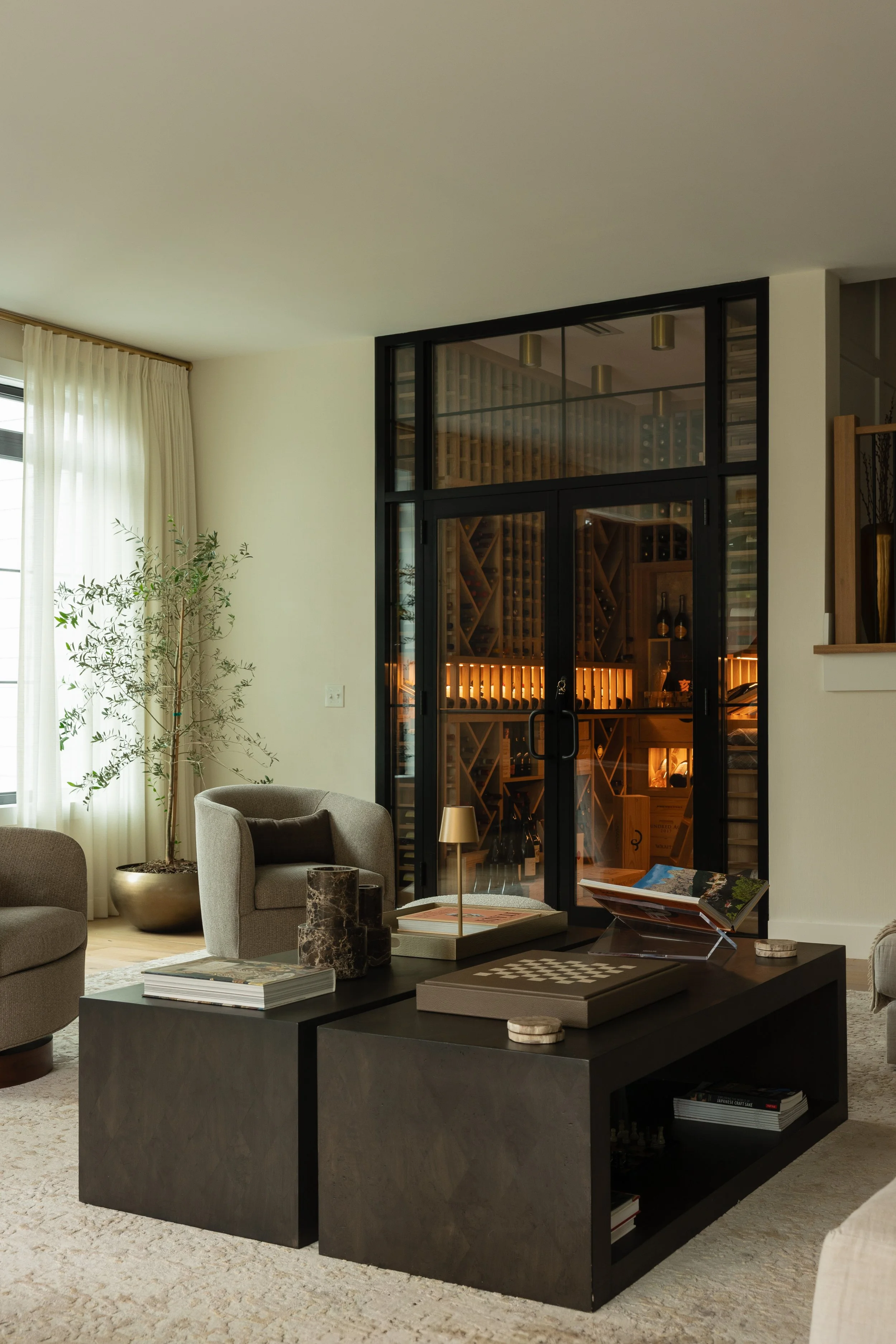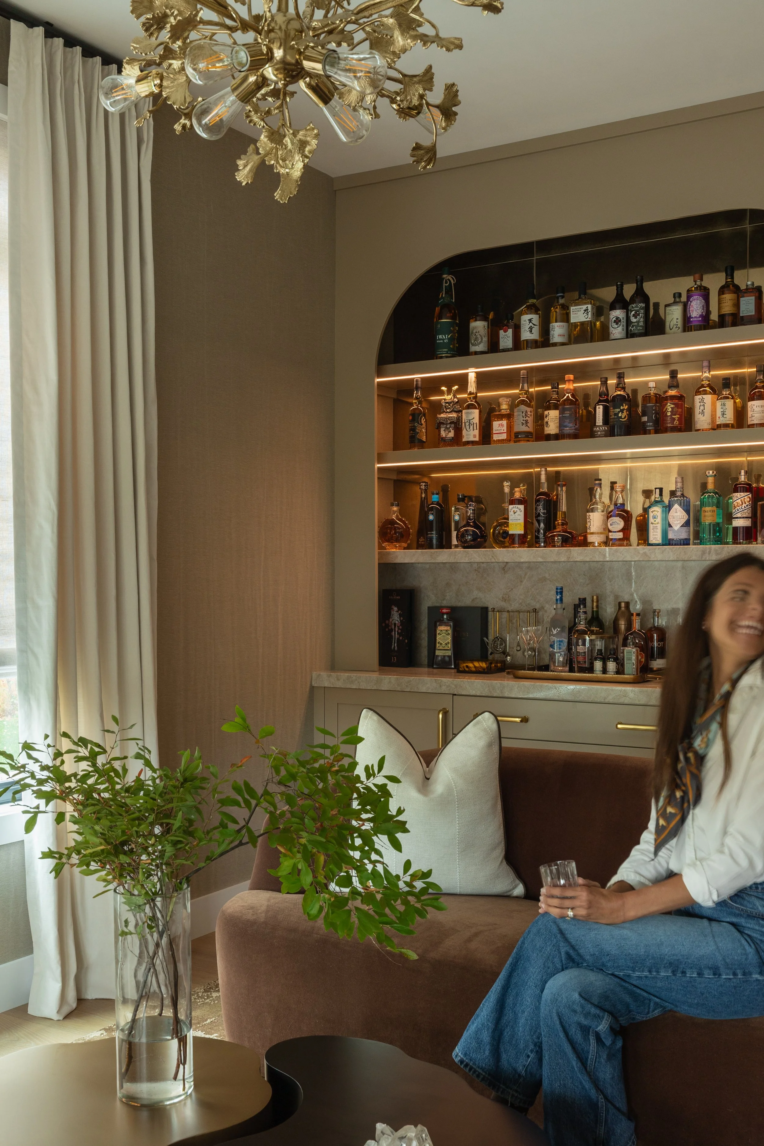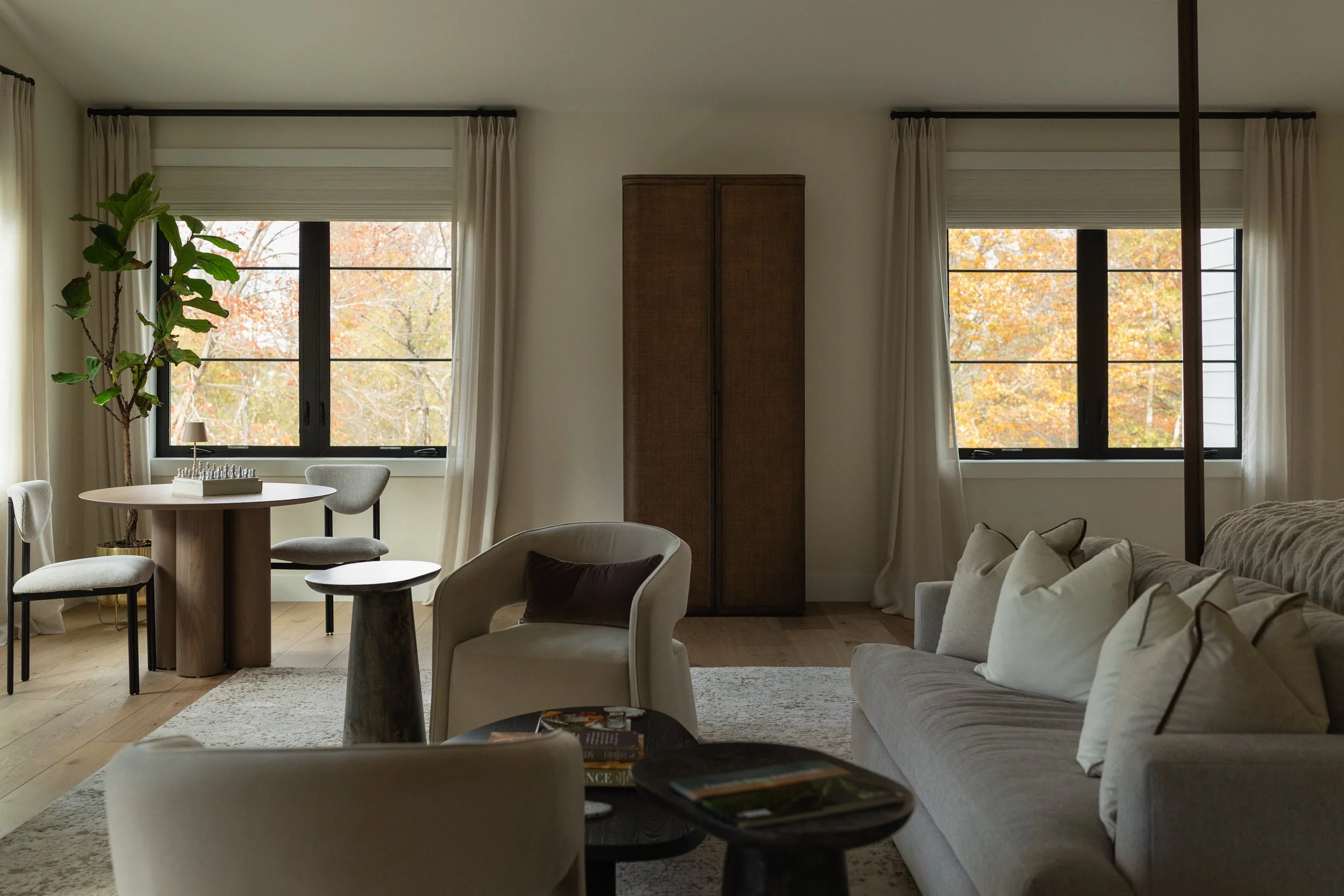 This renovation project in Falmouth involved renovations and updates to a builder spec home. Samantha was hired to rework some of the spaces to better suit the homeowner’s needs and interests. She fully furnished the house, created a bar lounge to showcase the homeowners collection of Japanese whiskey, took part of the mudroom and closed it off to open from the other side in the living room and have it as a temperature controlled wine room and completely built out the one open space basement into 3 functional spaces - a listening room, office and boutique style home gym.