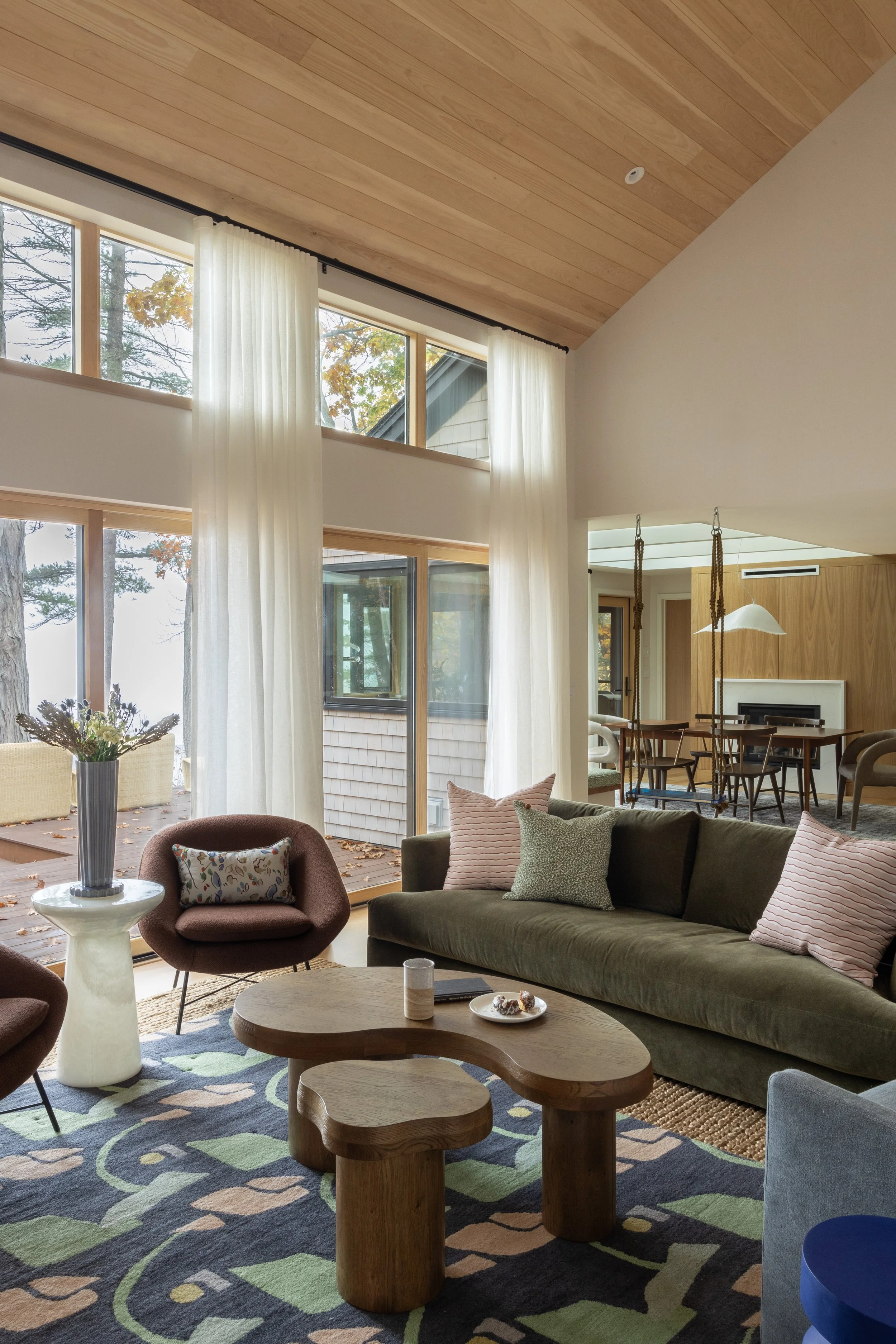 This full scope renovation and addition project in Yarmouth involved collaborating with the architect for interior layouts and space planning, building material selections, millwork specifications, as well as all curating and selecting furnishings and accessories for the main living spaces.